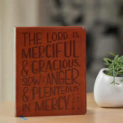 Journaling your thoughts and prayers and writing out Scriptures is a time-tested way to spend time with the Bible. This edition sets the tone with verse art from Psalm 103 stamped on the cover.