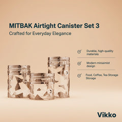 MITBAK Airtight Kitchen canister (Set of 3) | Food Storage Containers in 32, 22, & 15 -Ounce Sizes | Pantry Organizers Neatly Hold Food, Coffee, Beans, Sugar, Flour, Tea, Cereal Nuts & (Silver)