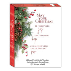Introducing our exquisite faith-based Christmas cards, adorned with beautiful Christmas berries, King James Version scripture, and an red foil special finish.