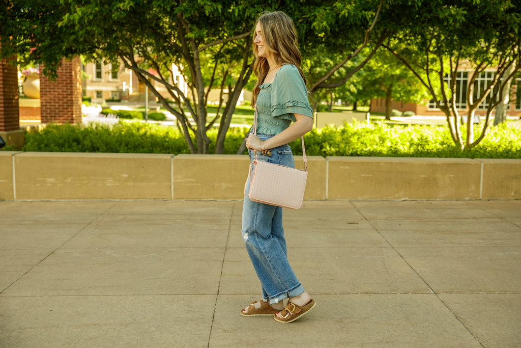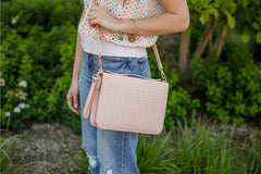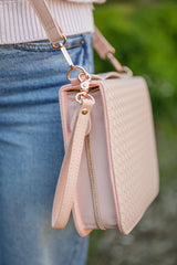 The Ever, AJ Weave Bible Case is designed to blend minimalist desirability with smart functionality. This premium vegan leather Bible Case is for the women who like to carry only the essentials. The Bible Cover is equipped with a detachable wristlet, a convenient spine handle, and a detachable crossbody strap for an effortless carry.