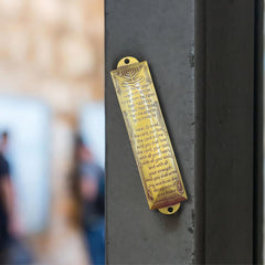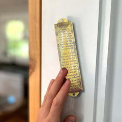 This Jewish door mezuzah offers spiritual safeguarding for your home. Featuring a mezuzah parchment scroll, it's one of the finest mezuzahs for outside doors with scrolls available. The mezuzah with scroll for door self-stick design allows for easy installation. Despite being a mezuzah small enough for compact spaces, it carries profound significance, making it an ideal choice for those seeking a meaningful yet unobtrusive addition to their entryway.