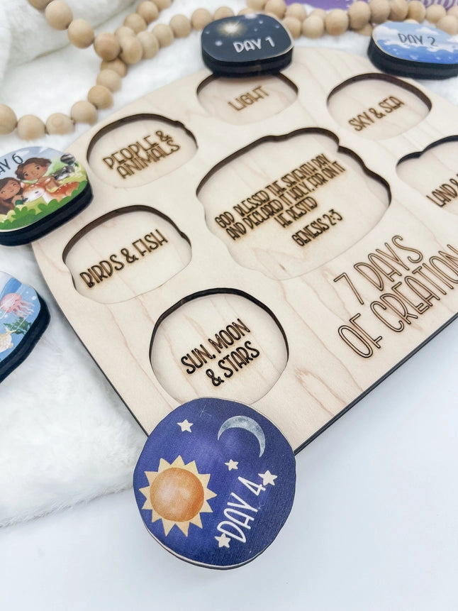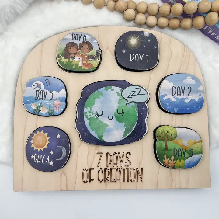 Amazing durable wooden puzzle to assist in teaching children about God's love and how He created the world.